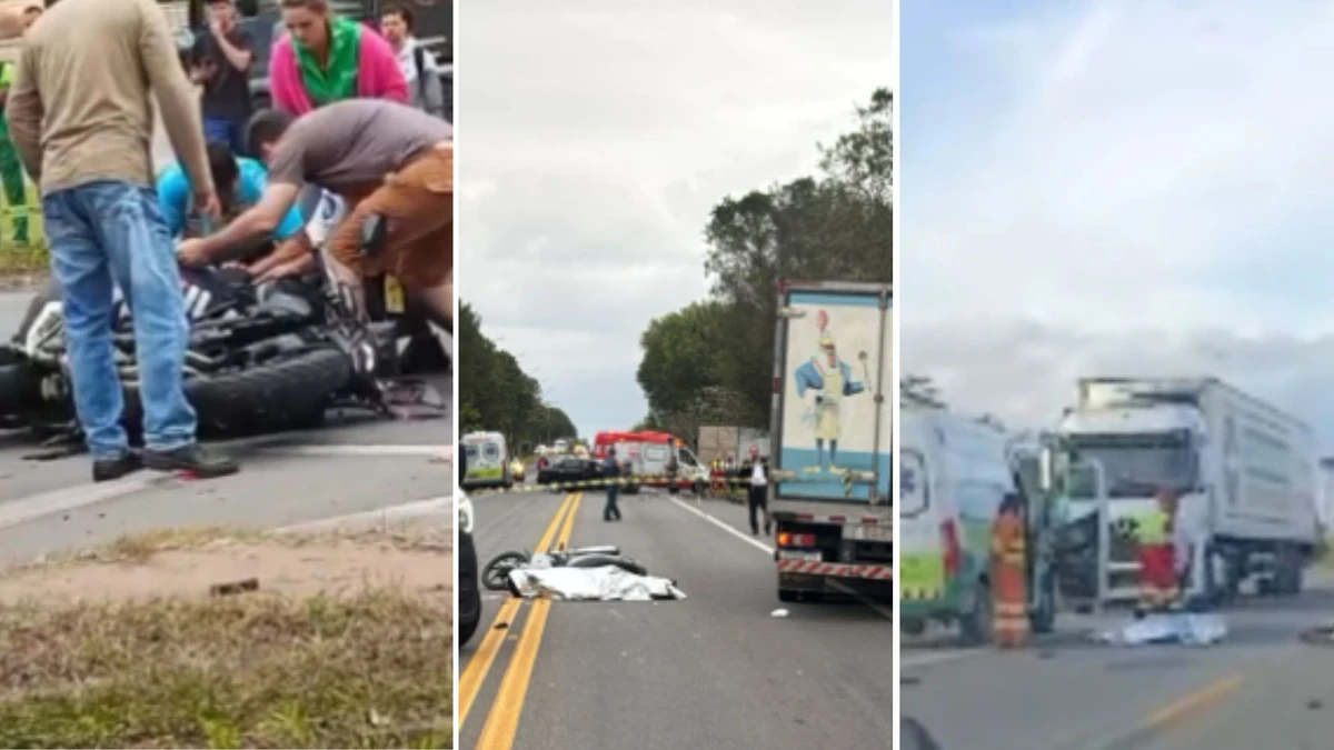 Na tarde de terça-feira (12), um motociclista identificado como Wellton Moraes dos Santos morreu no km 145 da rodovia, em Linhares, na altura de Gaivotas. Segundo apuração da TV Gazeta Norte, o acidente envolveu uma moto Honda Biz, um Toyota Corolla, dois caminhões e uma carreta carregada de eucalipto. O motociclista foi atropelado pela carreta e não resistiu. Já o condutor do carro ficou ferido e foi socorrido pelo Serviço de Atendimento Móvel de Urgência (Samu).>