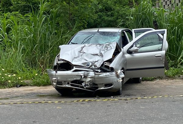 O repórter da TV Gazeta Sul, Matheus Passos, apurou com a Polícia Militar que o carro, um Fiat Palio, seguia no sentido Centro quando perdeu o controle, invadiu contramão e colidiu de frente com uma moto, que trafegava no sentido contrário. >