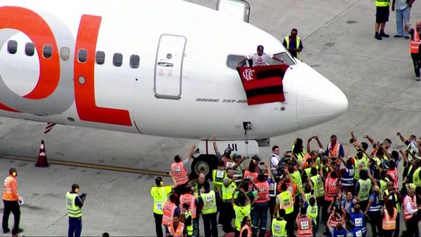 O avião foi escoltado por caças da Força Aérea Brasileira (FAB) na chegada à Cidade Maravilhosa. Já na pista, ainda taxiando, o piloto abriu a janela e balançou a bandeira do Flamengo no momento em que a aeronave recebeu jatos de água. Gabigol, autor dos dois gols do título, também apareceu na janela do avião com uma bandeira do clube e fez a alegria dos funcionários do aeroporto. >