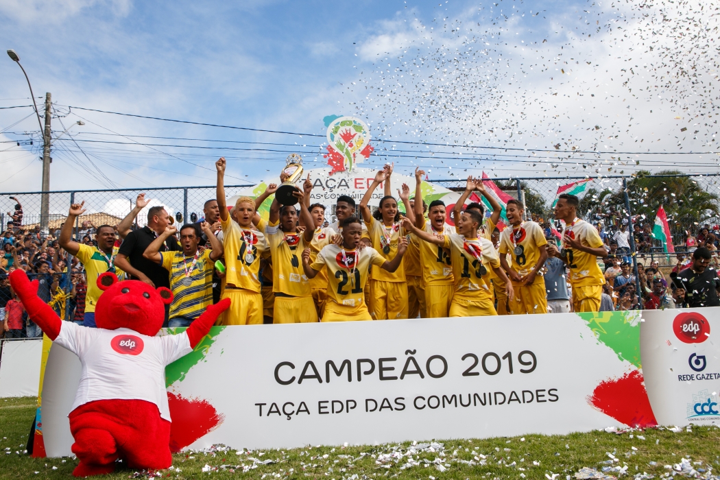 Foram três meses de competições com o envolvimento de mais de 5 mil atletas de 40 comunidades da Grande Vitória. E após partidas de tirar o fôlego, temos os campeões da Taça EDP das Comunidades. No masculino, o time de Praia de Carapebus, na Serra, levantou o troféu ao vencer Santa Terezinha por 1 a 0. No feminino, Muquiçaba garantiu a taça ao bater Serra Dourada III por 4 a 1. As partidas aconteceram ontem, no Campo de Serra Dourada III.>