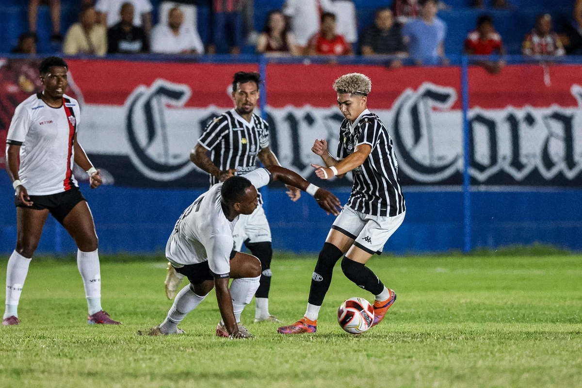 O Capa-Preta, apesar de ter mais posse de bola, mostrou dificuldades na criação, mas levou perigo em jogadas pontuais, como a bola na trave de David Lopes e uma boa chance com Neto Oliveira, defendida por Pedro Henrique, mantendo o placar zerado até o intervalo.>