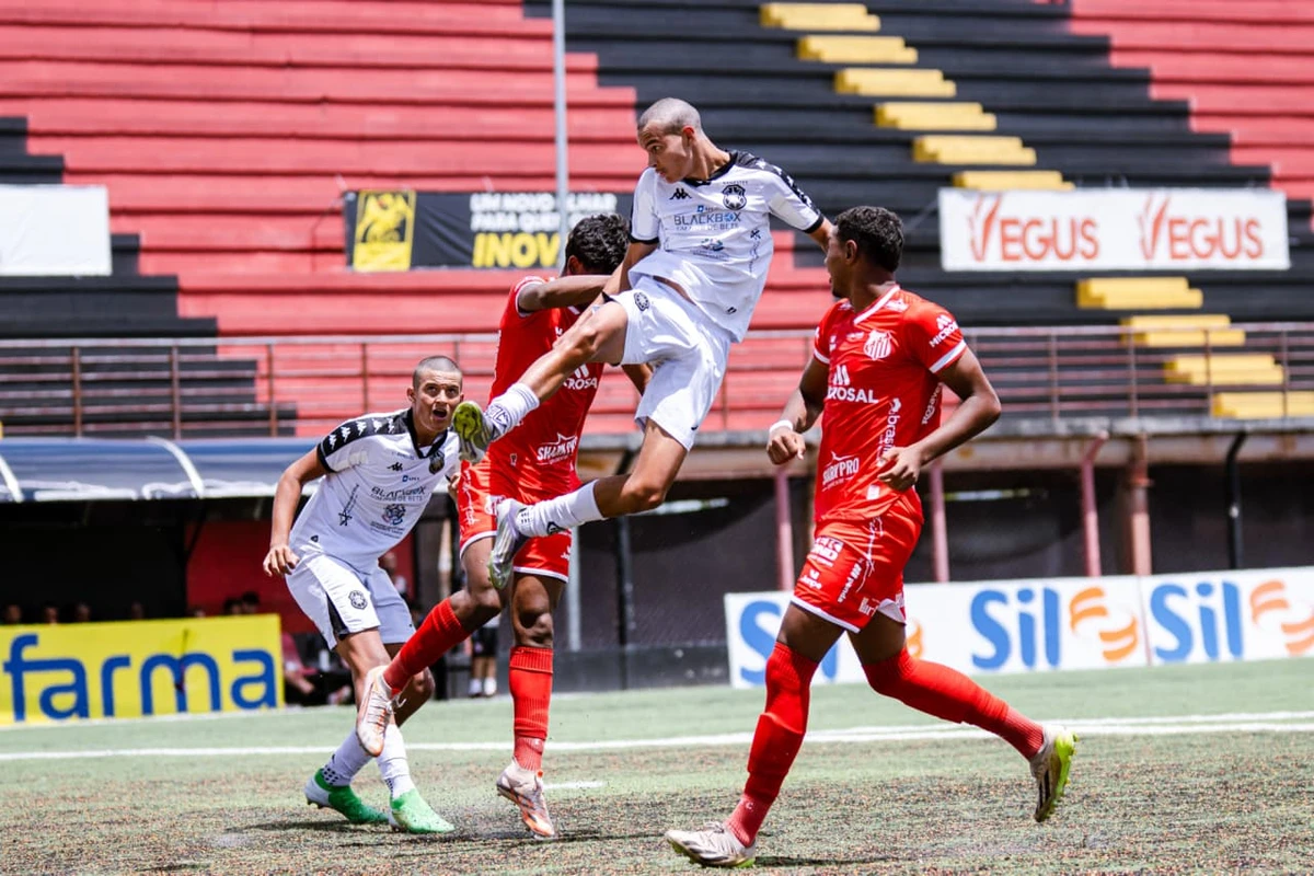 Mais eficiente, o time paulista ampliou aos 37 minutos, com João Vitor, que marcou um belo gol após rebote dentro da área. Mesmo em desvantagem, o Rio Branco seguiu pressionando e foi premiado aos 41, quando Wendell pegou o rebote, após cabeçada de Pedro Nunes na trave para diminuir o placar. Nos minutos finais, o Capa-Preta esteve perto do empate, com Kauãzinho acertando a trave em cobrança de falta, mantendo o jogo aberto até o intervalo.>