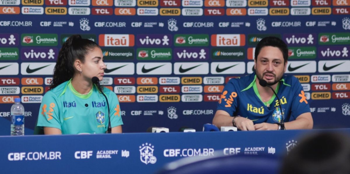 A Seleção Brasileira Feminina seguiu com a sequência de treinamentos no Estádio Kleber Andrade, em Cariacica, com foco nos amistosos contra a Colômbia, que acontecerão neste sábado (26) e na próxima terça-feira (29). Antes da atividade, o técnico Arthur Elias e a meia Angelina concederam uma entrevista coletiva, e falaram sobre as expectativas para os confrontos. E fica o aviso: o torcedor capixaba pode esperar ver medalhistas olímpicas entres as onze titulares na partida.>