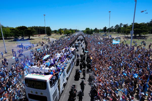 BUENOS AIRES - Quase 5 milhões de torcedores argentinos tomaram as ruas de Buenos Aires, nesta terça-feira (20), para receber o ônibus com a seleção campeã da Copa do Mundo. Os fãs lotaram as principais avenidas, viadutos e praças da capital Buenos Aires para receber a seleção na volta para casa.>