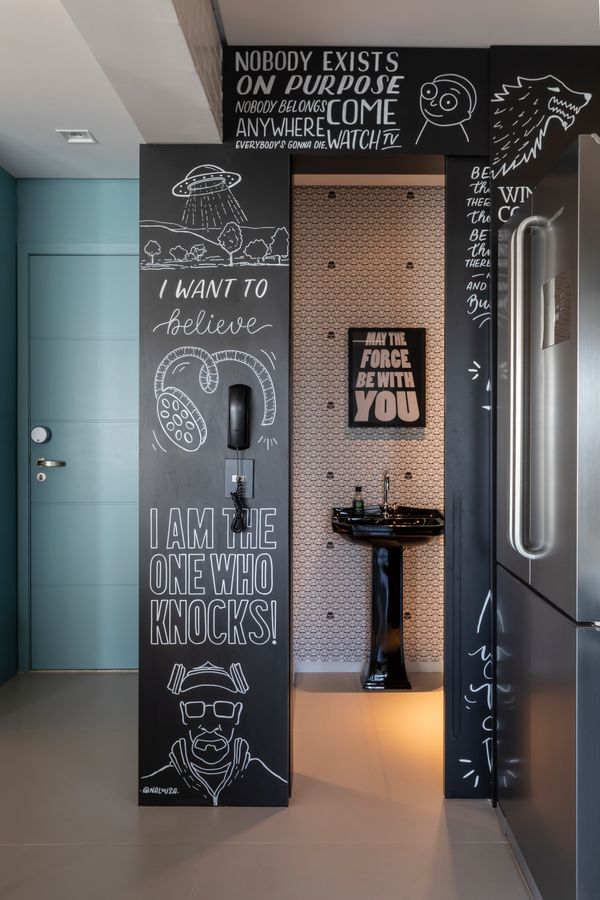 Você percebeu que alguns cenários e personagens de filmes e séries são tão icônicos que, só de bater os olhos em algum elemento, já sabemos do que se trata? Um exemplo é que, mesmo não sendo da fanbase da franquia, quando vemos um sabre de luz, lembramos da arma usada pelos Jedi e pelos Sith em Star Wars. Dentro de casa, papel de parede, painéis fotográficos, prateleiras com objetos colecionáveis e almofadas são algumas alternativas para representar o que gostamos de consumir. >