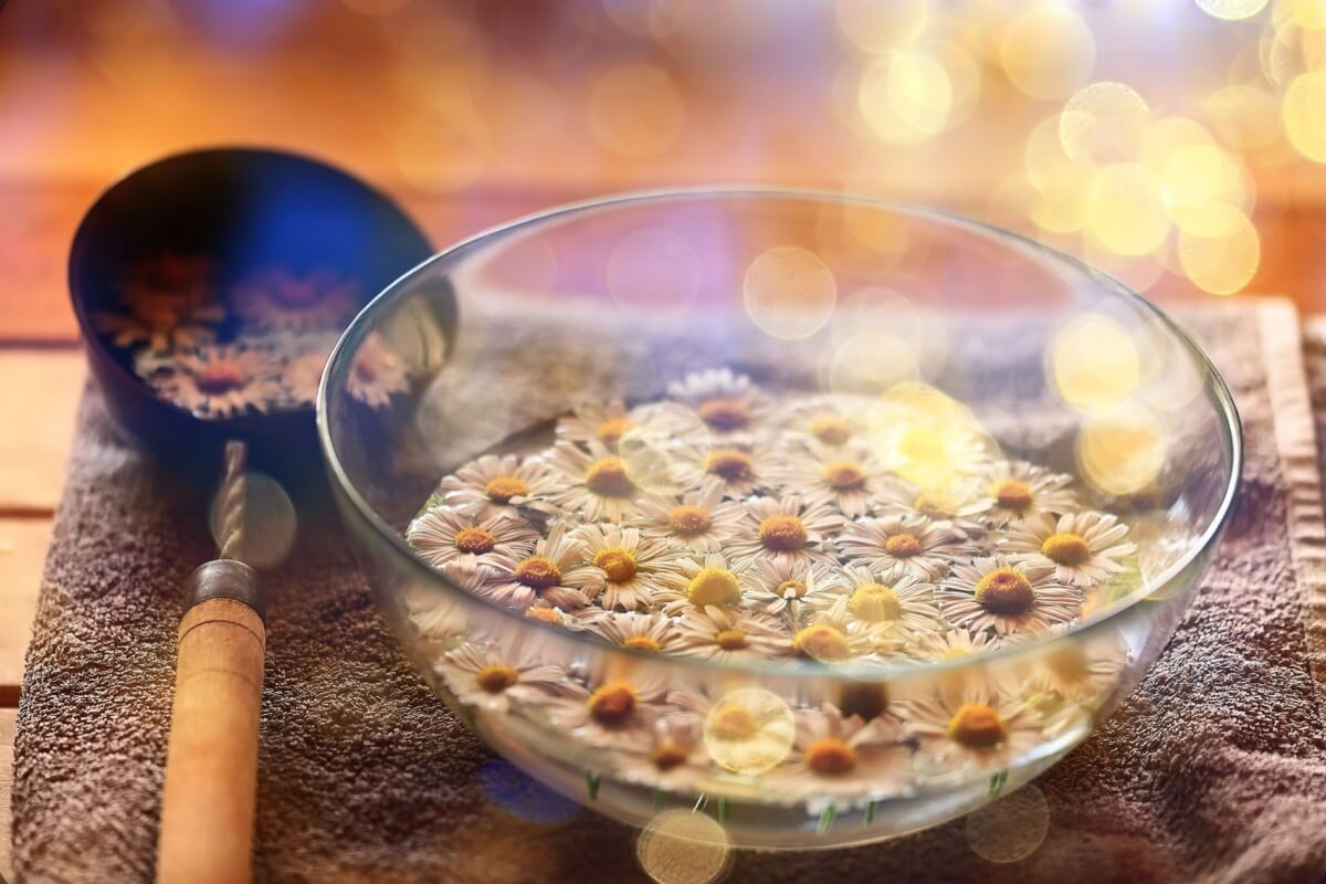 Em uma panela, ferva a água em fogo médio e adicione as ervas. Após amornar, coe e, depois do seu banho higiênico, jogue do pescoço para baixo, mentalizando as emoções sendo acolhidas e purificadas. >