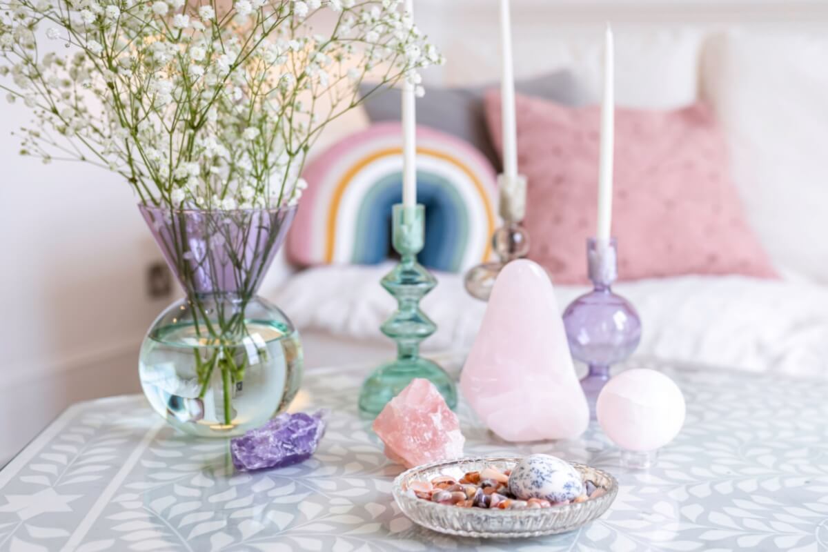 Os cristais ajudam a harmonizar o ambiente e elevar a vibração da casa. Alguns dos mais indicados para sorte e proteção são: quartzo transparente (harmonia e clareza), citrino (prosperidade e alegria) e ametista (proteção e equilíbrio emocional). Onde colocar: sala de estar, hall de entrada ou local de descanso. >
