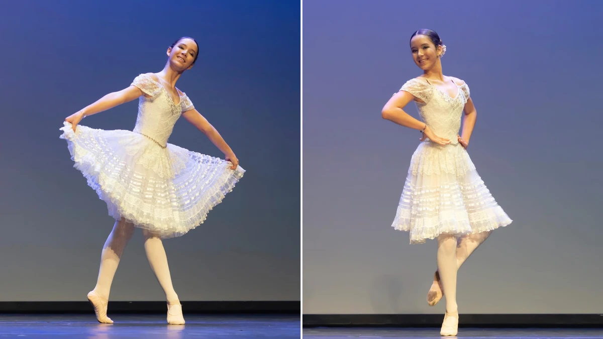 Maria Júlia recebeu o diagnóstico de diabetes tipo 1 aos 7 anos. Desde então, ela precisa realizar ao menos sete aplicações de insulina por dia. Pouco tempo depois da descoberta, aos 9 anos, já encantada com as aulas de dança que fazia na escola, iniciou o estudo do balé em um estúdio especializado.>