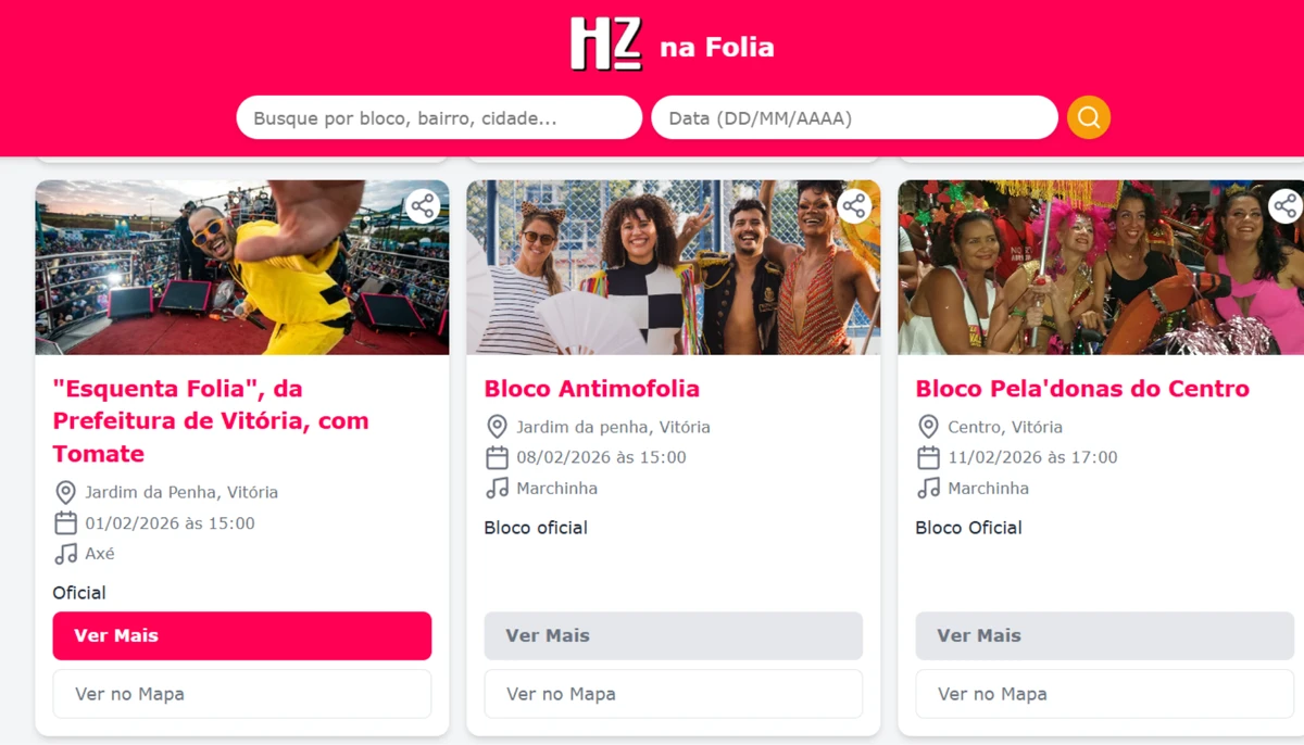 A novidade chega em um momento perfeito: o Carnaval no Espírito Santo já começou, com blocos espalhados pela Grande Vitória, litoral e interior. E a proposta do HZ é transformar a agenda da folia em algo simples, acessível e prático, do jeitinho que o Carnaval gosta de ser. É possível acessar pelo site HZ na Folia.