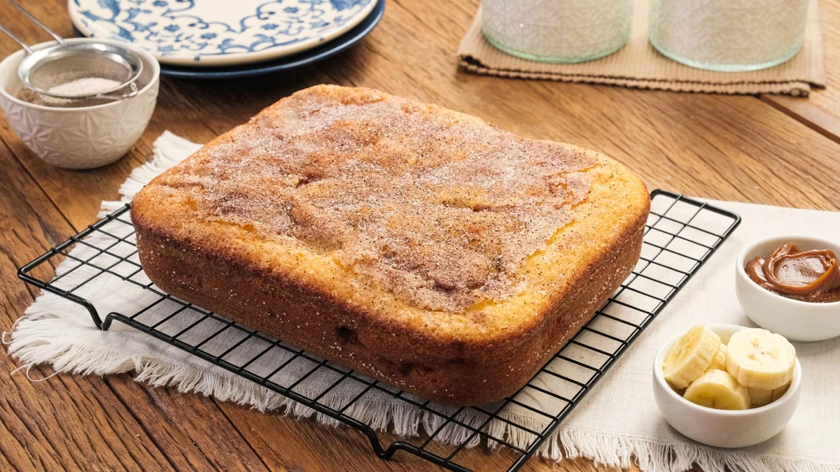 Que tal um bolo de banana fofinho, com um toque cremoso de doce de leite, coberto com açúcar e canela? Essa receita irresistível é a dica do HZ para o seu fim de semana. >