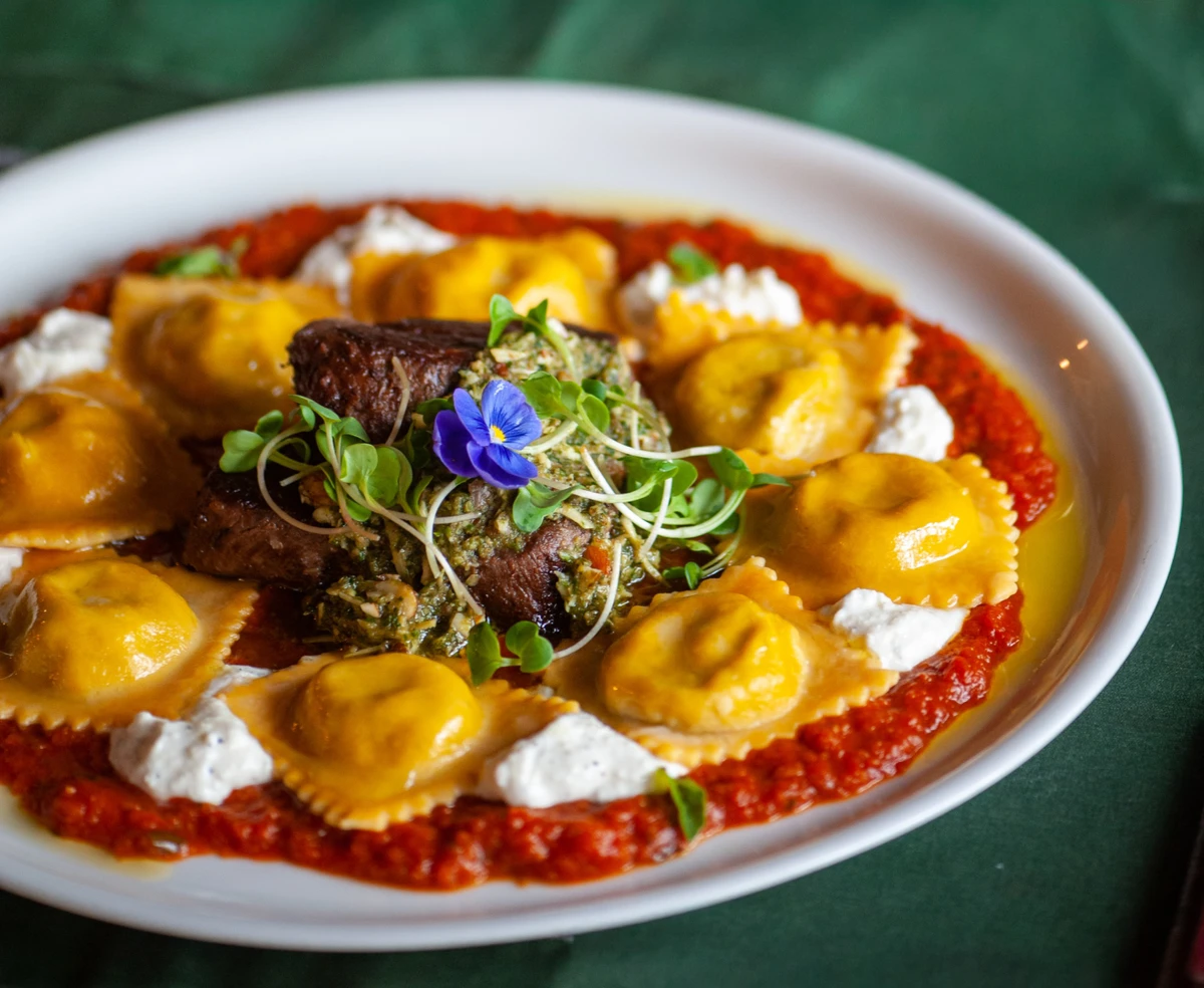 GIOCONDA CANTINA ITALIANA(@gioconda.cantinaitaliana) - Ravióli recheado de espinafre e ricota, molho sugo de stracciatella e filé ao pesto (R$ 110/individual). Mais informações: (27) 99837-9513.