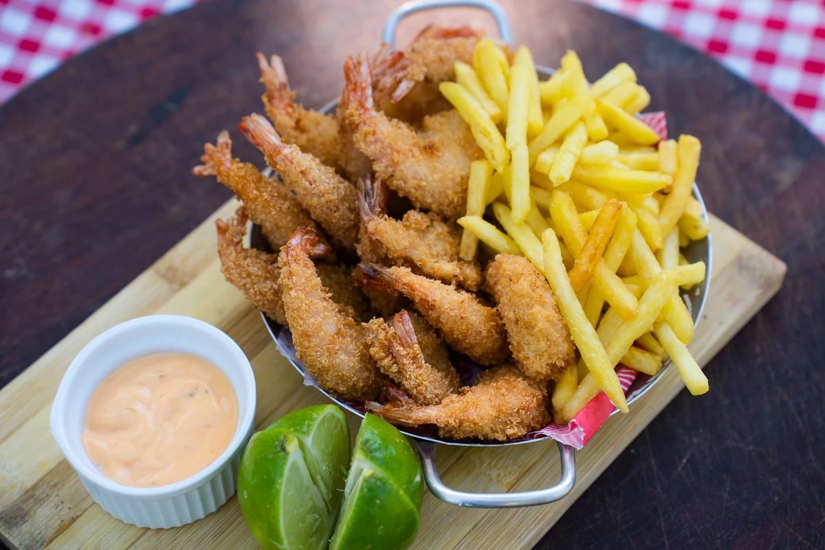 Camarão empanado, isca de peixe, burrito de camarão, risoto de mariscos e até moqueca capixaba estão entre as receitas inspiradas no litoral, mas o cardápio do evento contará também com espetinhos variados, pizza, poke, hambúrguer e sanduíche. Os preços das porções variam entre R$ 15 e R$ 100. >