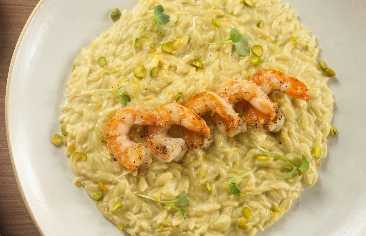 Aproveite a dica do HZ para surpreender seus convidados preparando um delicioso risoni ao mascarpone com pistache e camarão, em vez daquele clássico macarrão ou risoto do fim de semana.>