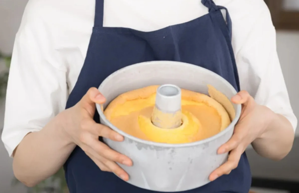 Retirar o bolo ainda cru ou desenformar quente o faz afundar no meio.