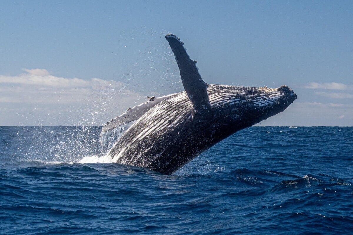 Uma das cenas mais marcantes envolvendo a jubarte é quando ela salta para fora da água e cai com força na superfície. Esse comportamento pode acontecer por vários motivos: comunicação com outras baleias, demonstração de força, brincadeira e até tentativa de remover parasitas presos à pele. O impacto do corpo na água também pode produzir um som forte, que se espalha por longas distâncias no oceano. >