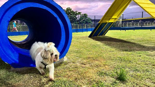 A área, pensada para lazer, prática esportiva e como espaço de interação e convivência entre os cães, é totalmente cercada e equipada com brinquedos dinâmicos e interativos no formato de circuito. Os cães vão poder aproveitar com muita diversão os equipamentos como túnel, salto de obstáculo, rampa, gangorra, obstáculo com pneu, slalom, entre outros. >
