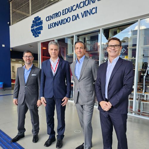Luiz Valmont (CEO Inspired Brasil), Mário Broetto (Diretor do Centro Educacional Leonardo da Vinci), Nadim N’souli (Fundador do Inspired Education Group) e Graeme Crawford (Presidente do Inspired Education Group): liderança mundial do conglomerado internacional de educação em visita ao Centro Educacional Leonardo da Vinci, do qual a instituição capixaba de ensino faz parte.