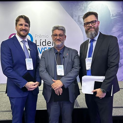 O médico e diretor-geral do Hospital Maternidade São José, Octacílio Calixto (à direita), recebeu o prêmio de Líder IVSB 2023. A premiação, que aconteceu em Belo Horizonte, reconhece que a instituição filantrópica tem avançado na gestão da saúde pública, trazendo indicativos positivos de eficiência, como as reduções do tempo de permanência no leito, do número de reinternações, de óbitos, dentre outros índices. Na foto, ele está com Fabrício Gaeede, presidente da Federação dos Hospitais Filantrópicos do ES, e com Miguel Duarte Neto, secretário estadual de Saúde.