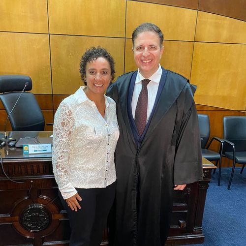 A advogada Érica Neves e Adriano Sant'Ana Pedra, que tomou posse como juiz titular do TRE-ES