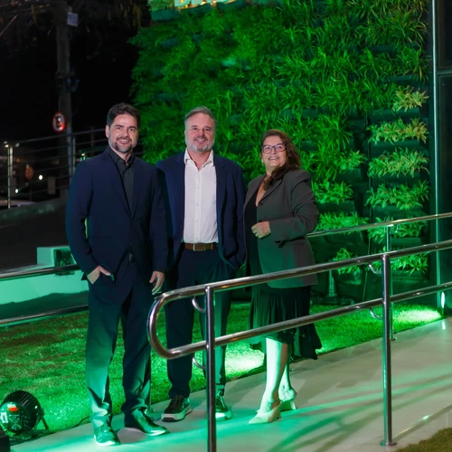 O diretor Geral do Meridional Serra, Marcelo Rosas, o médico coordenador do serviço de imagem, Leonardo Amaral e a diretora Médica, Lia Canedo, em evento de inauguração do novo espaço de exames para a realização de radiologia no Hospital Meridional Serra.