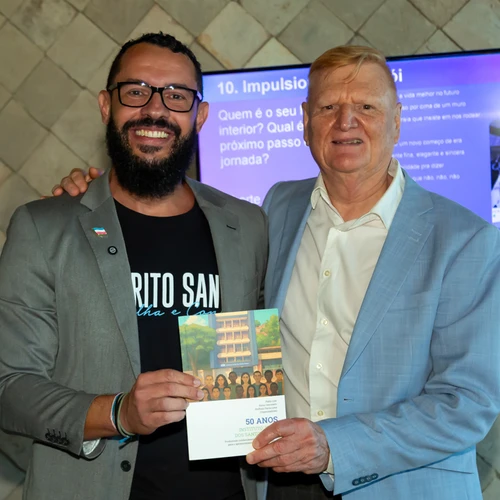 Pablo Lira, professor, pós-doutor e diretor-presidente do IJSN, foi o palestrante do Summit Sinepe, evento que reuniu mais de 100 gestores, mantenedores e diretores de instituições de ensino privadas associadas ao Sinepe/ES para celebrar o Dia do Diretor Escolar. Ele foi recepcionado pelo presidente da entidade, Moacir Lellis, e entregou um presente a Lellis, o livro de comemoração dos 50 anos do IJSN. Em retribuição, o presidente do Sinepe/ES o presenteou com uma placa por sua palestra aos educadores, que teve o tema: “Você, seu herói: rumo à sua melhor versão”. O Summit Sinepe ocorreu na última quarta-feira, dia 12, no Restaurante Camarada Camarão, em Vitória.