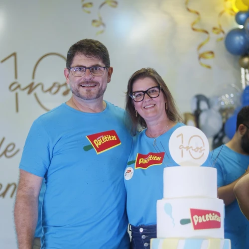 Wanderson Lamoia e Cris Loss celebraram junto à equipe os 10 anos da Paletitas, primeira marca do Grupo Lamoia e pioneira no Espírito Santo na produção de paletas. Com 55 lojas espalhadas por quatro estados, a marca conquistou o paladar e o coração dos capixabas, tornando-se parte da memória afetiva local. Os números refletem uma década de sucesso e sabor, fruto de dedicação e inovação da equipe: em dez anos, foram produzidos e vendidos cerca de 100 milhões de picolés. Atualmente, a Paletitas produz, em média, 5 mil toneladas anuais e, com a expansão da unidade fabril em andamento, a capacidade poderá triplicar nos próximos três anos.