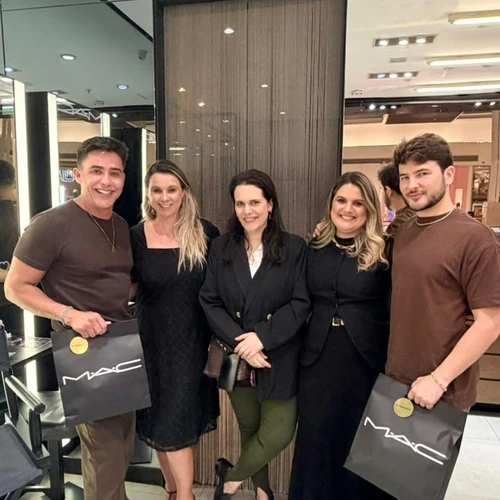 Ricardo Silveira, Mari Nass, Bárbara Fortes (gerente geral Estee Lauder no Brasil, , Samya Medeiros e Wallace Abeldt: jantar especial para maquiadores sêniores noWine Garden do Shopping Vitória. Em breve, a Jo Malone, grife de cosméticos de Londres, chega ao nosso mall.