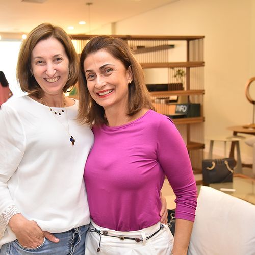Marília Celin e Ana Marsiglia prestigiaram o lançamento de mobiliário com design, no espaço de Carmen Dolores Souto, em Vitória.
