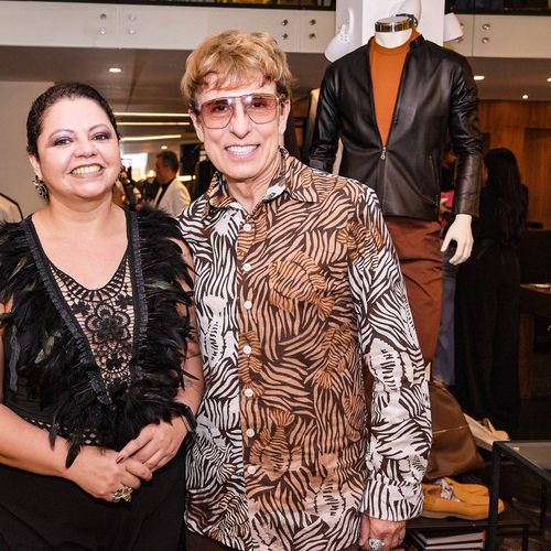 Márcia Lopes e Pietro Di Marcos: no coquetel que deu o start para o grande desfile 2024 de Ivan Aguilar.