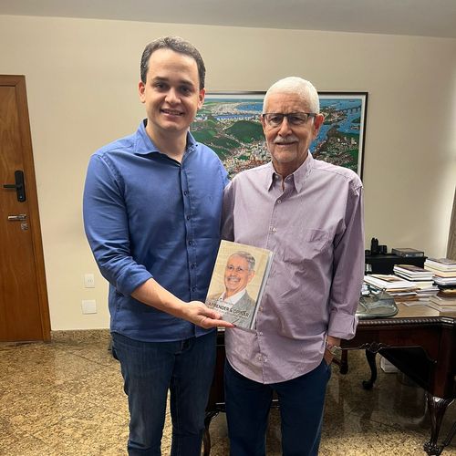O prefeito de Vitória Lorenzo Pazolini recebeu Luiz Carlos Menezes, em seu gabinete. O empresário fez a entrega do livro de sua autoria "Aprender e Opinar".