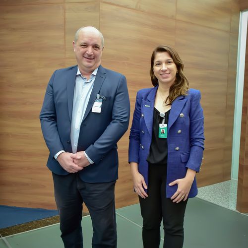 Rafaele Cé, presidente da Rede Petro ES, e Eduarda Lacerda, Gerente Geral da Unidade de Negócios de Exploração e Produção do Espírito Santo, no “Seminário de Negócios Petrobras”. O evento aconteceu nesta quarta-feira (21), no auditório da Petrobras em Vitória, e reuniu 200 empresários para debater sobre os investimentos futuros e em curso da Petrobras no Espírito Santo.