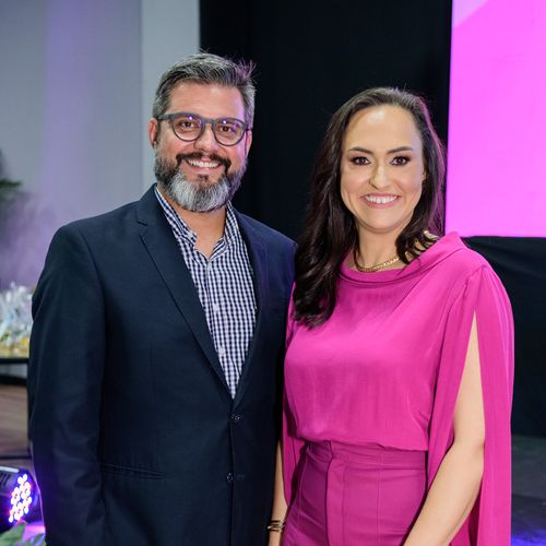 Caio Kuster e Neydi Christo durante o Conexa H, maior congresso de gestão de pessoas do Espírito Santo. Na foto o advogado Caio Kuster e a presidente da ABRH-ES, Neydi Christo. Caio foi mediador do painel "Negócios que Transformam".