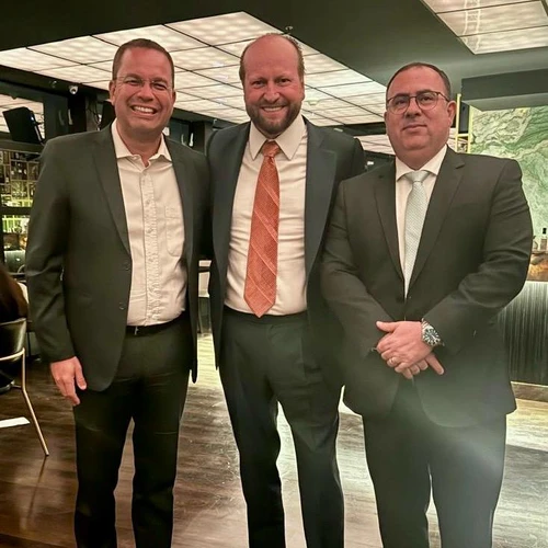 O advogado Nelson Wilians, um dos maiores do país, esteve em Vitória nesta semana, para uma série de agendas na Capital. Ele recebeu uma honraria na Câmara de Vereadores, participou de um podcast e fez uma palestra para jovens advogados no Hotel Ilha do Boi. Na segunda-feira à noite, Nelson Wilians recebeu personalidades do mundo jurídico e empresarial para uma confraternização no Tetto Rooftop, na Mata da Praia. O escritório Nelson Wilians possui unidades em todos os Estados do Brasil e tem também atuação internacional. Em Vitória, o escritório é liderado pela advogada Camila Fernandes e por Fabiano Mendes. Na foto: Igor Elson, ex-vereador da Serra e atualmente assessor no Senado, Nelson Wilians e Fabiano Mendes.