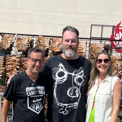 Antonio Saugo, organizador do Carnivoria, o chef Jimmy Ogro e Leticia Dalvi, gerente de Marketing do Shopping Vitória: na abertura do Festival de churrasco de chão neste sábado (15). O evento continua nos dias 21, 22 e 23 de abril, no estacionamento do Shopping Vitória.