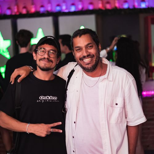 Léo Alves, produtor do MoV.Cidade, e Diego Lemos, à frente da Casa Sete e Lúdica Entretenimento, na festa "Nosso Rolê na Pink", que reuniu todos os ritmos e públicos, na Pink Elephant, no Triângulo das Bermudas
