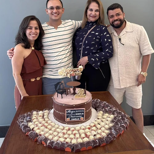 Gabriel Almeida celebrou seus 30 anos com o "Churrasco do Gabriel", no último domingo (27), ao lado de amigos e familiares. Na foto, o aniversariante é ladeado pela mulher Jociane Ramalho, e os amigos Carmem Spinassi e Erivelton Moreira.