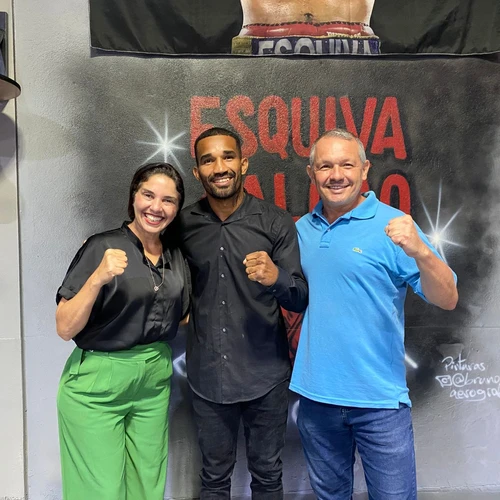 A abertura da academia do boxeador Esquiva Falcão reuniu dezenas de pessoas na noite de sábado, em Vila Velha. Presente ao evento, a vereadora do município Carol Caldeira destacou a importância do projeto social do boxeador, que treinará gratuitamente crianças da comunidade. A parlamentar disse que buscaria apoio também junto aos colegas da Câmara e ao empresariado local, para impulsionar o projeto. Na foto, a vereadora Carol Caldeira com Esquiva Falcão e o professor de Kickboxing Luciano Ricardo Machado.
