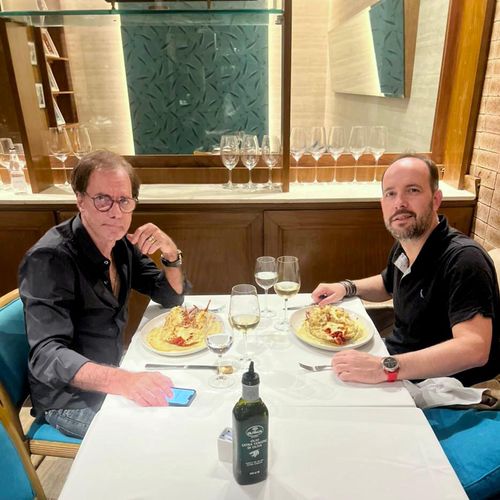 O arquiteto Edgar Moura Brasil e o nosso Fabrício Fabre: encontro no restaurante Antiquarius, no Rio de Janeiro.