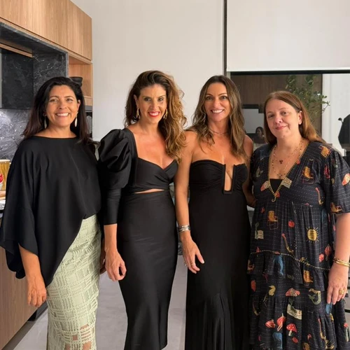 Gorete Thorey, Cledina Freire, Geraldo Lino e Andreia Biccas: no vernissage da coletiva "Tramas e Linguagens", que celebra os 18 anos da galeria Via Thorey. Crédito: Thuanny Louzada