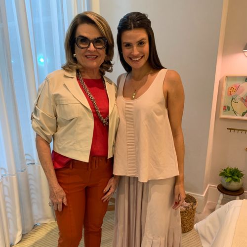 A designer de interiores Zilda Helal ao lado da arquiteta Mariah Cardoso, que assina o quarto Brisa, novo ambiente da mostra Casa Arrumada, em Santa Lúcia.