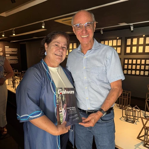 O empresário José Luís Galveas fez um pit stop especial no Parque Cultural Casa do Governador para entregar em mãos à primeira-dama, Virgínia Casagrande, a nova edição da revista institucional da Galwan. Dona Virgínia, inclusive, estampa a capa desta edição em reconhecimento à sua iniciativa de abrir a residência oficial ao público, transformando-a em reduto de arte e cultura. A publicação ainda mergulha em temas como o novo aeroporto das montanhas e o restauro do Teatro Carlos Gomes.