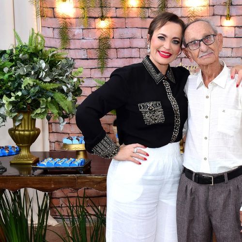 Ele é um dos comerciantes mais velhos em vida de todo o Estado. Ativo, dançarino e apreciador de vinho, Epitácio Guedes de Oliveira, seu Tacinho, como é conhecido, comemorou 100 anos neste final de semana. Foi um dos fundadores do Mercado Municipal de Colatina, contribuindo para o desenvolvimento da cidade. Na foto, ele durante a festa, com sua neta Veruska Muniz, que atua no segmento de e-commerce e Growth Marketing no Estado.