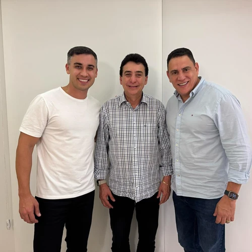 O prefeito da Serra, Weverson Meireles, o secretário-chefe da Casa Civil do Governo do ES, Júnior Abreu, e o deputado federal Da Vitória. Conversa sobre as potencialidades e o futuro do Espírito Santo.