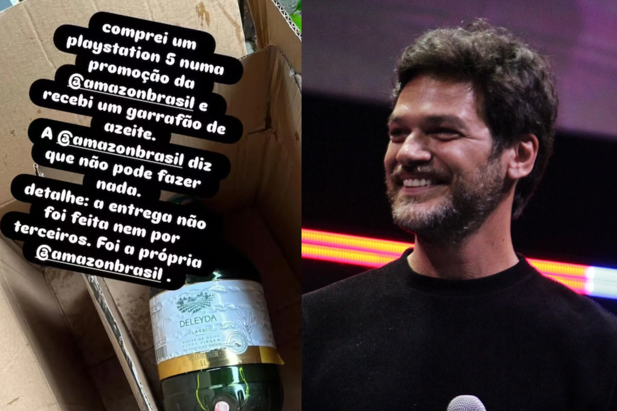 Em uma publicação no Instagram, o artista compartilhou a imagem do azeite e relatou a situação. "Comprei um Playstation 5 numa promoção da Amazon Brasil e recebi um garrafão de azeite. A Amazon diz que não pode fazer nada. Detalhe: a entrega não foi feita nem por terceiros. Foi a própria Amazon", escreveu. >