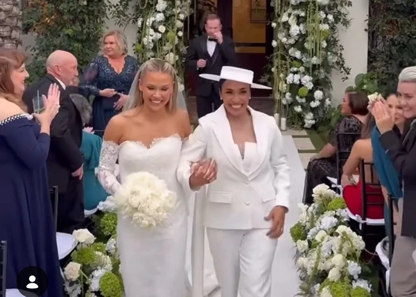 A jogadora Marta Silva oficializou sua união com a zagueira Carrie Lawrence na sexta-feira (2), em uma cerimônia intimista realizada na Flórida, nos Estados Unidos, onde o casal vive atualmente.>