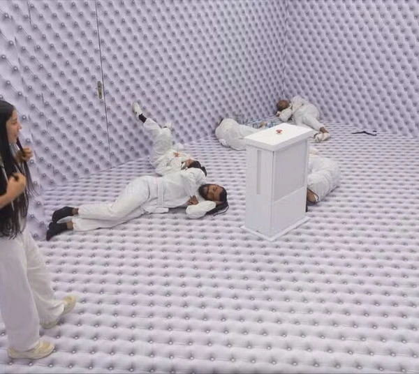Além da privação de estímulos, a produção também toca sons perturbadores para os participantes. Eles já ouviram ruídos como bebês chorando, unhas arranhando superfícies e cachorros latindo.>