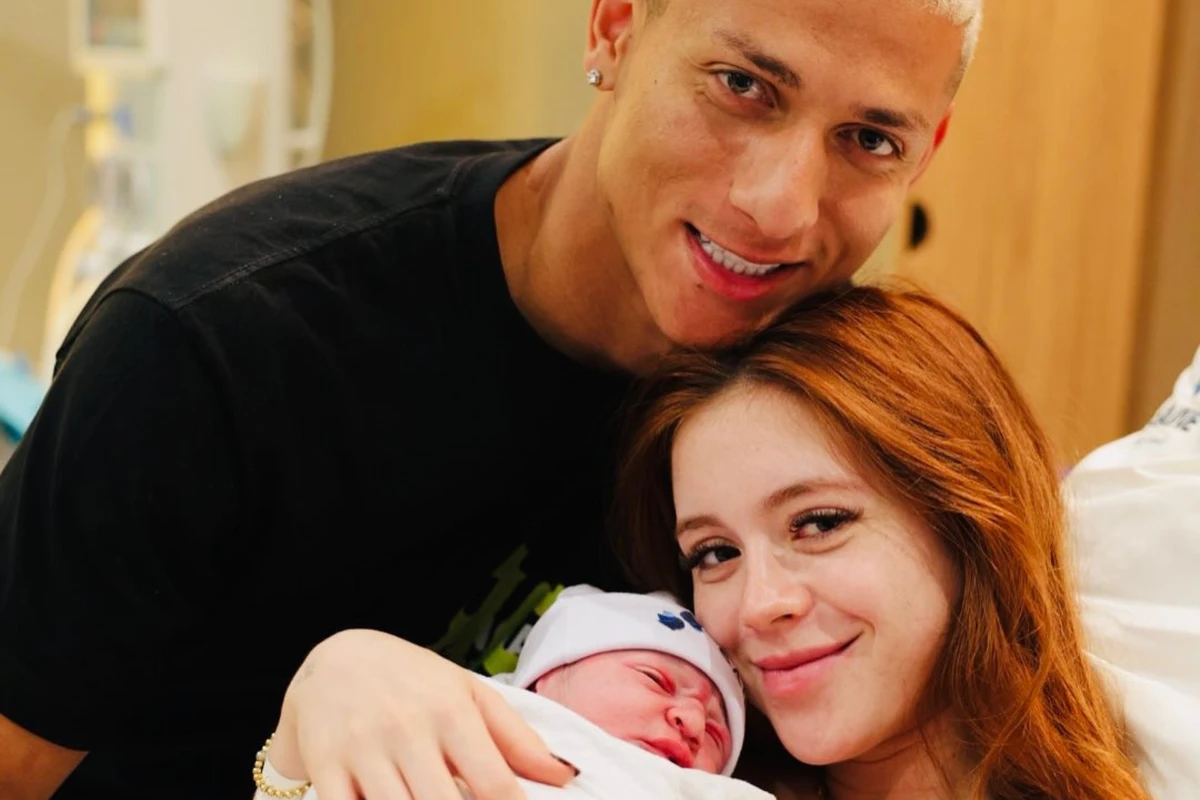 O atacante capixaba da Seleção Brasileira Richarlison, 28, e a influenciadora digital Amanda Araújo, 21, anunciaram o nascimento do primeiro filho neste domingo (15).>