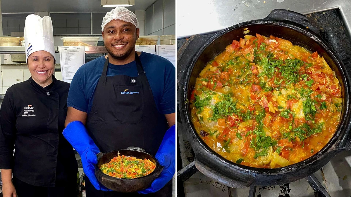 Mas não parou por aí. Nesta sexta-feira (26), Ramon teve a oportunidade de acompanhar de perto a rotina de uma cozinha profissional no Hotel Senac Ilha do Boi, onde aprendeu, na prática, a preparar a moqueca capixaba, um momento especial para o cozinheiro, que é mineiro. >