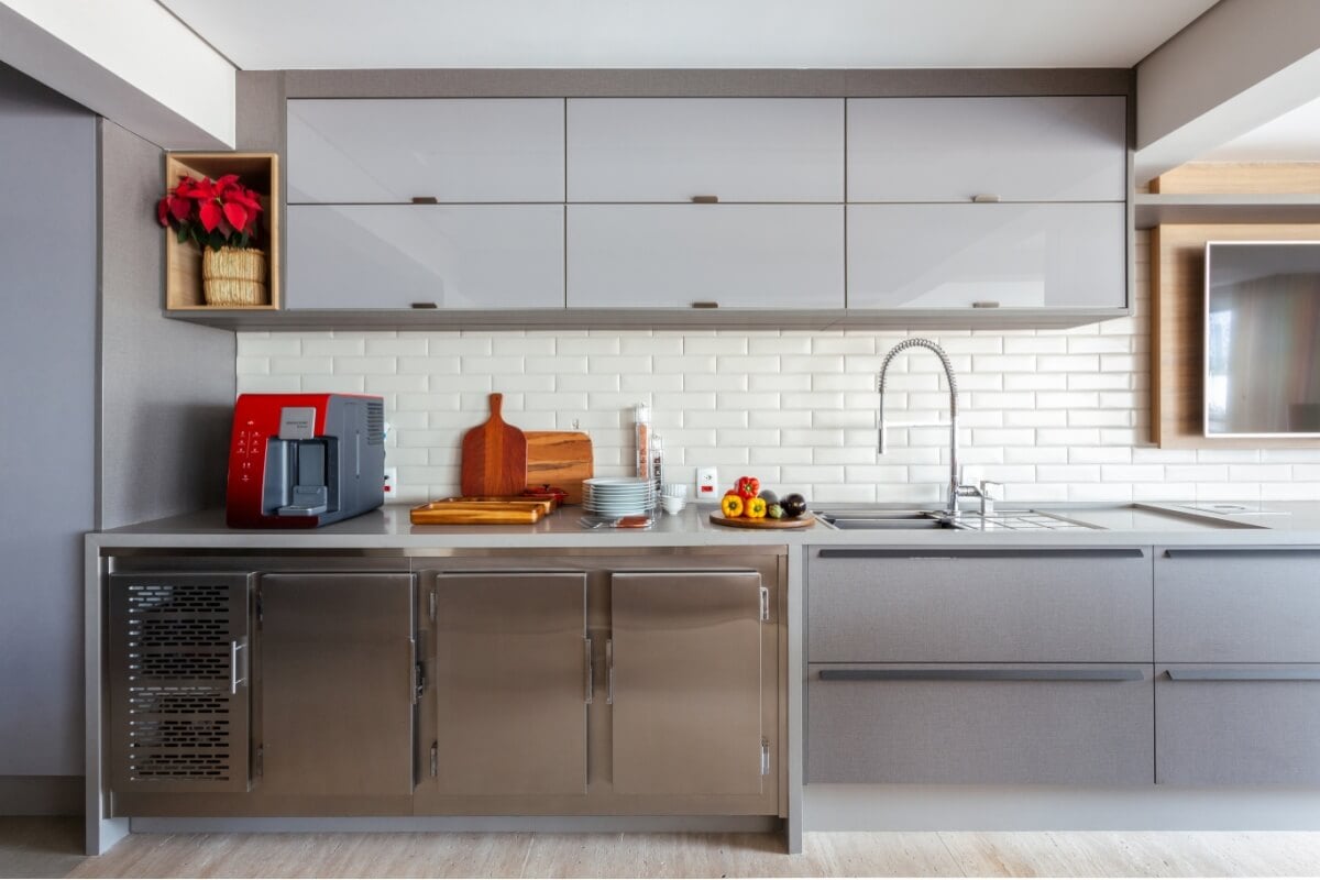 Mesmo uma boa escolha pode ser comprometida por uma instalação inadequada. Por isso, o cuidado nessa etapa é fundamental, tanto na cozinha quanto na área gourmet. “No caso de torneiras com água quente, misturadas ou com sistemas integrados, como filtragem ou acionamento automático, sempre recomendamos que a instalação seja feita por um profissional qualificado. Ele saberá avaliar corretamente a pressão da água, as conexões e as vedações necessárias”, explicam as arquitetas da Dantas & Passos Arquitetura. >