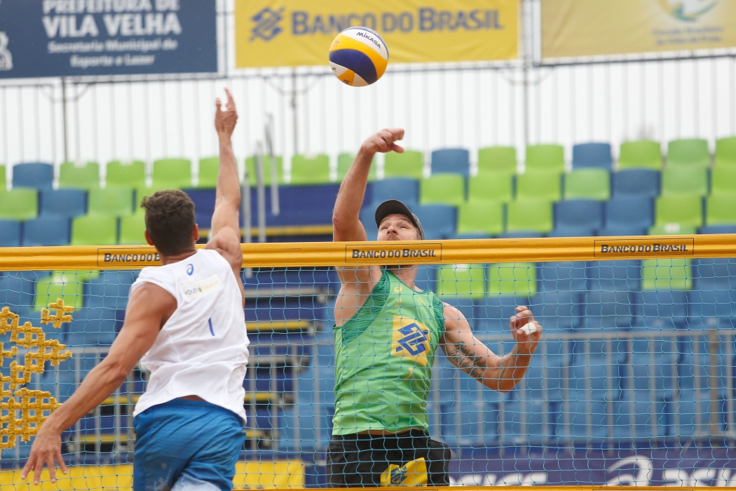Natural de Vitória, Vinícius faz parceria com o cearense Hevaldo. No jogo em que eles garantiram liderança do grupo F, a torcida da casa foi toda para o atleta capixaba. >